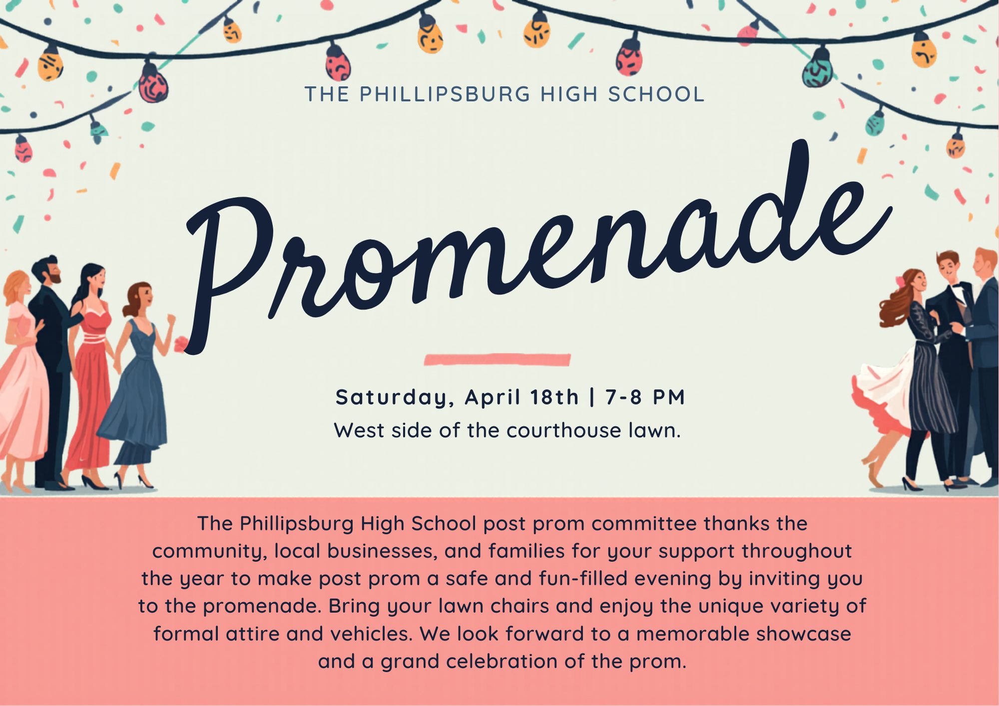 The Phillipsburg High School Post Prom committee would like to say thank you to the community, local businesses, and families for your support throughout the year to make post prom a safe and fun filled evening by inviting you to the promenade.
