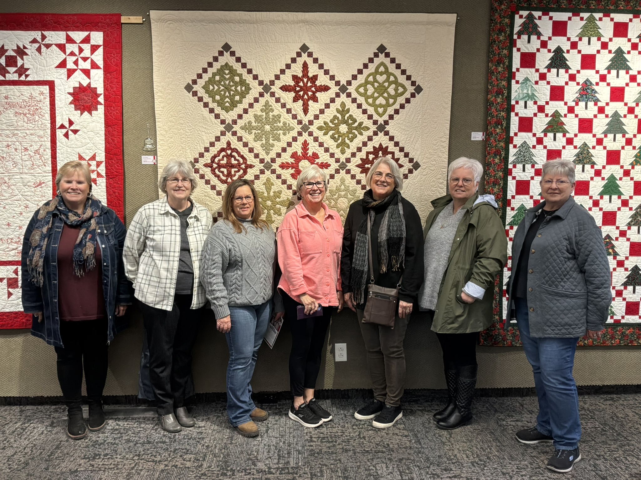 The Twelve thoroughly enjoyed the exhibition, pausing to admire techniques, recall past projects and reminisce about quilt patterns they once tackled together. They laughed about color trends from their early quilting days and noted how many of those hues are now cycling back into modern quilt shops. Their connection was unmistakable, and their shared love for both quilting and friendship was truly infectious. As mentioned in last week’s article, these ladies know how to push pause and socialize. Their visit was filled with “oohs,” “ahhs,” and plenty of laughter.