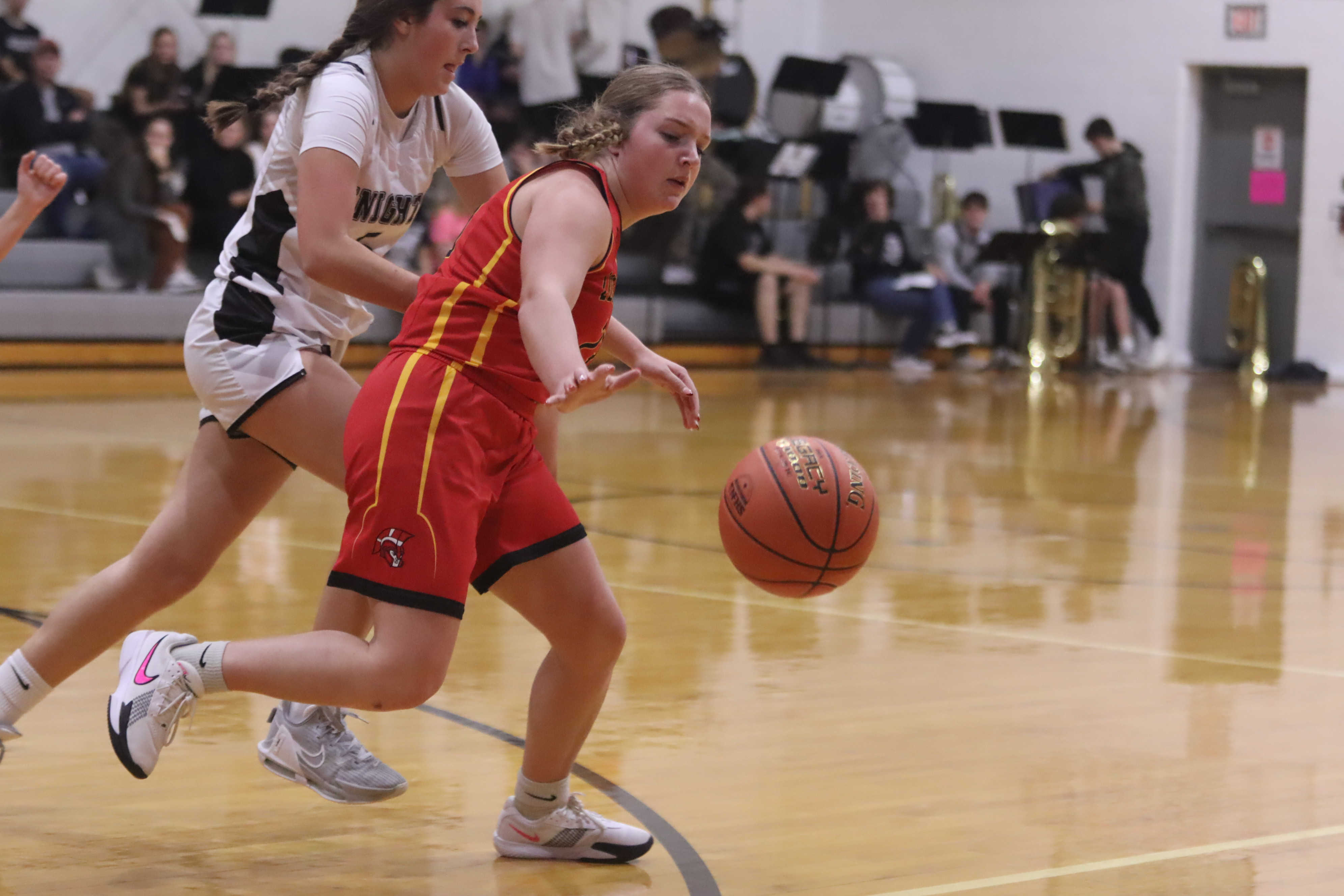 Junior Graci Bliss recovers a loose ball in Knight territory.