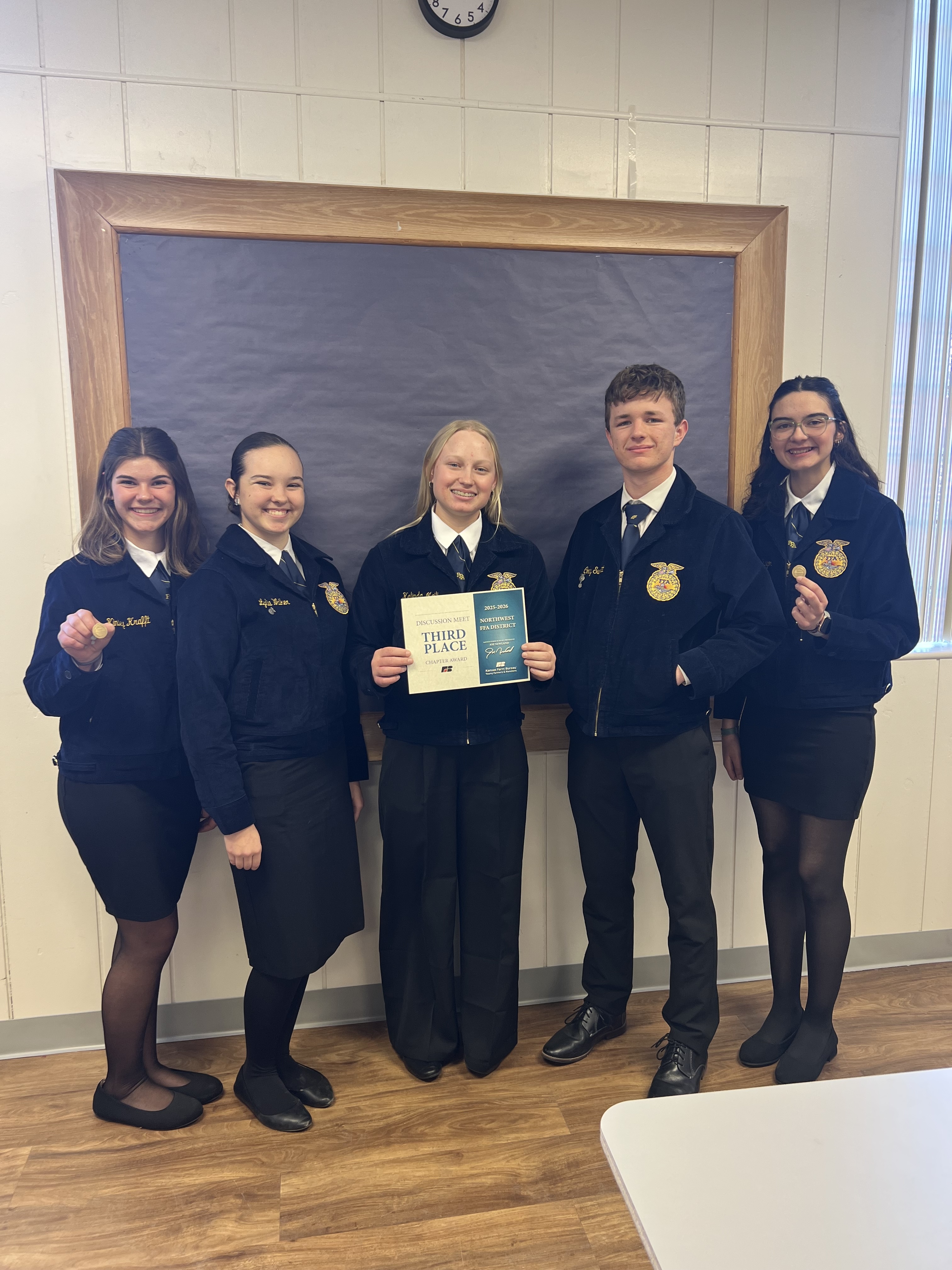 On Monday, Jan. 26, five members of the Phillipsburg FFA chapter traveled to Hoxie to compete in the Northwest District FFA Discussion Meet. This leadership development event (LDE) brought together FFA members from chapters across the Northwest District to discuss current agricultural issues and work toward possible solutions.