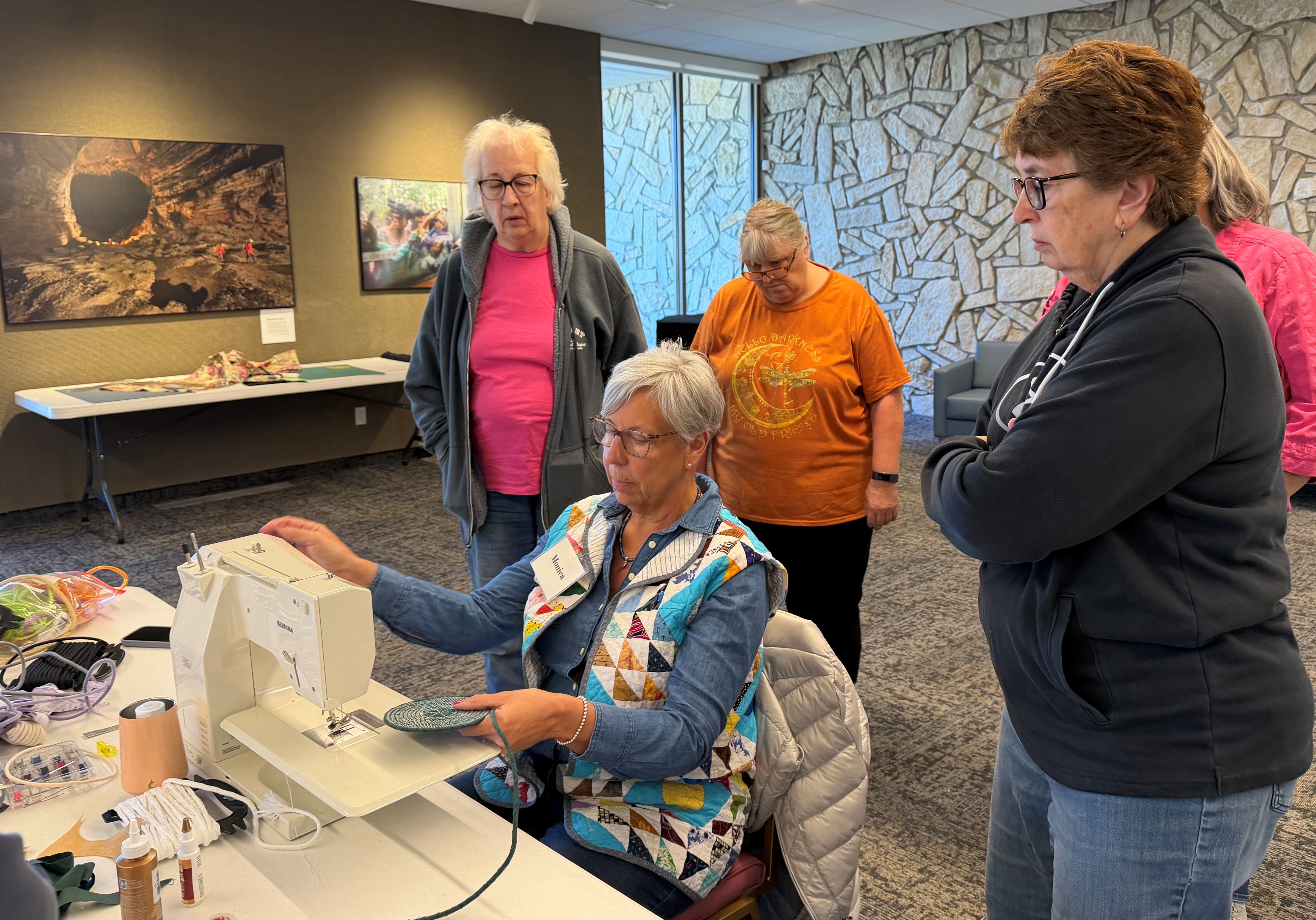 On Saturday, March 7th, the Museum hosted a lively Fabric-Wrapped Rope Basket Class led by the talented Monica Sellens. The classroom was filled with laughter, color, and creativity as participants turned simple materials—scrap fabric, cotton rope, glue, and a zigzag stitch—into charming and practical baskets.