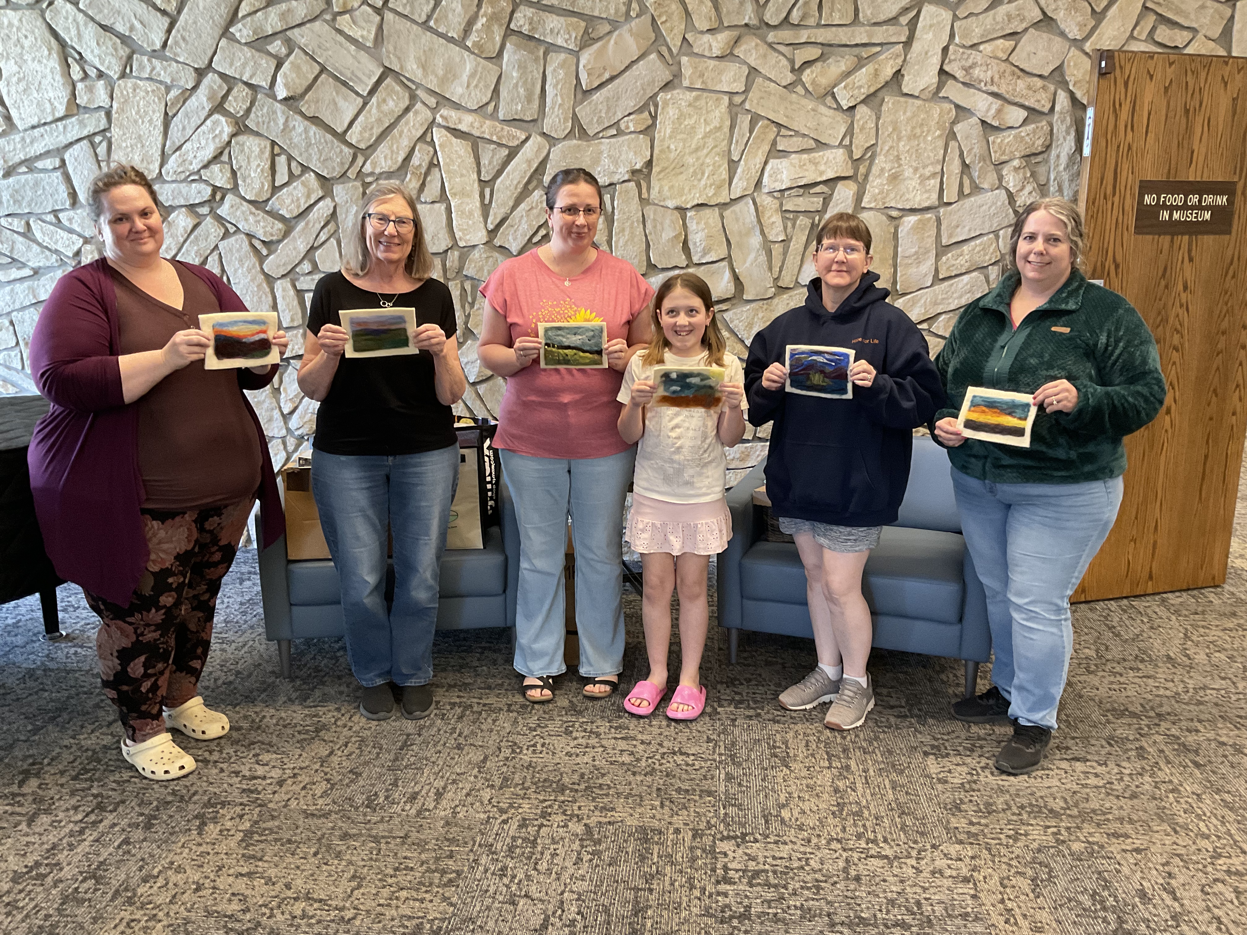 One of the most appealing aspects of needle felting is its accessibility for beginners while still offering opportunities for growth and creativity. Each participant received a basic supply kit containing wool roving, felting needles, and a foam pad to use as a work surface. Photos from the class, showcasing the beautiful works created under Marsha’s guidance, can be found on the Hansen Museum Facebook page. Keep an eye out—Marsha will be returning to the prairie to teach again.